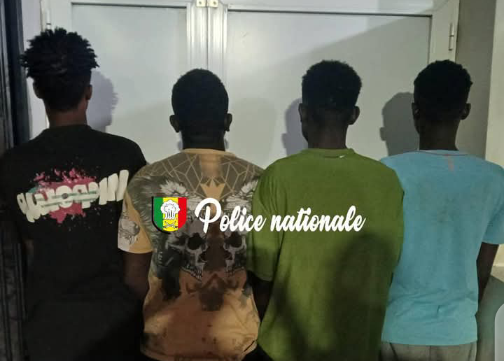 Le Commissariat d’arrondissement de l’Unité 15 des Parcelles Assainies a procédé à l’interpellation de quatre (04) individus à Cambérène pour association de malfaiteurs, vol en réunion commis la nuit et recel.