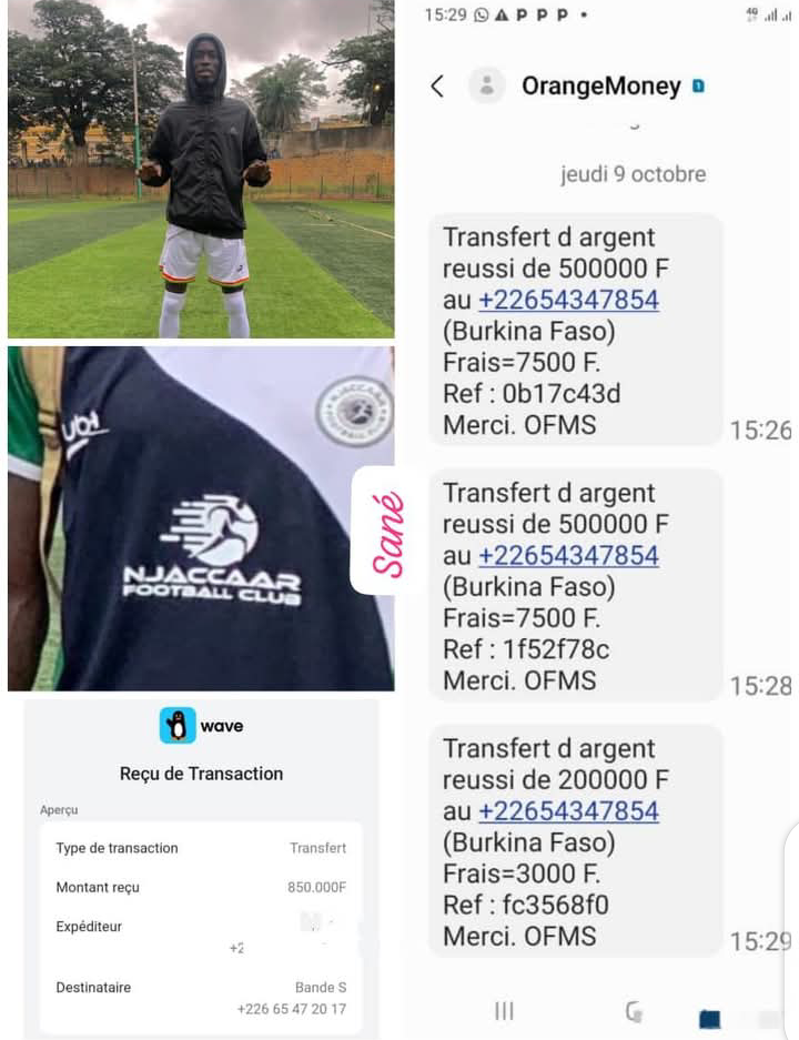 Cependant, une fois sur place, le rêve vire rapidement au cauchemar. Le club, dont l’identité reste floue, exige de lui une somme de 850 000 francs CFA pour intégrer le groupe devant se rendre au Maroc. Le 25 juillet, sa mère, malgré ses doutes, lui transfère la somme demandée. Mais les problèmes ne s’arrêtent pas là. Le 9 octobre, Alassane contacte à nouveau sa famille, cette fois pour réclamer 1 200 000 francs CFA supplémentaires, arguant que le club exige cette somme pour régler des frais urgents. Sans hésitation, son frère lui envoie l’argent le même jour, entre 15h26 et 15h29.