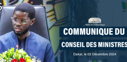 Le Chef de l’Etat, Son Excellence, Monsieur Bassirou Diomaye Diakhar FAYE a présidé, ce mardi 03 décembre 2024, la réunion hebdomadaire du Conseil des Ministres, au Palais de la République.
