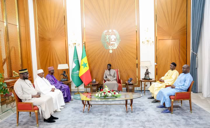 Le Président de la République, Bassirou Diomaye Faye, a reçu ce jour en audience une délégation de la Ligue des Imams et Prédicateurs du Sénégal, composée de l’Imam Ahmed Dame Ndiaye, de l’Imam Fadilou Tall et de l’Imam Ismaïla Ndiaye.
