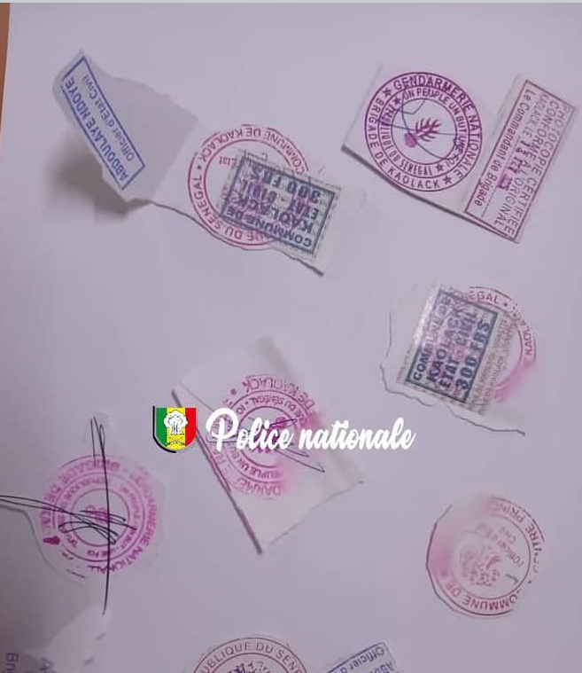 L’exploitation de son téléphone a révélé la présence de plusieurs actes douteux, parfois établis au profit de personnes étrangères, et des liens suspects avec des agents officiant dans l’état civil de la mairie de Kaolack, Toubacouta, Podor et d’autres lieux. La fouille du cartable trouvé par-devers le suspect au moment de son interpellation a révélé une véritable entreprise de fabrique de faux documents. En effet, ont été découverts :