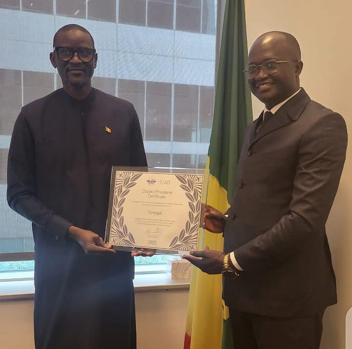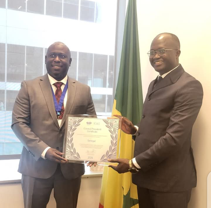 Le Ministre des Transports terrestres et aériens, Monsieur Yankoba Diémé a reçu la distinction des mains du Président du Conseil de l’OACI, Monsieur Salvatore Sciacchitano ce mardi 23 septembre 2025 lors de la cérémonie d’ouverture de la 42e Assemblée de l’OACI. Le Certificat du Président du Conseil de l’OACI créé pour appuyer l’initiative « Aucun pays laissé de côté », se base sur les résultats des activités du Programme universel OACI d’audits de supervision de la sécurité – Méthode de surveillance continue (USOAP-CMA). Les récipiendaires sont les Etats qui ont réalisé des augmentations de leur score de mise en œuvre effective des normes et pratiques recommandées de l’OACI de plus de 15%. Ce qui est le cas du Sénégal qui est passé de 67% en 2019 à 85% en 2024.