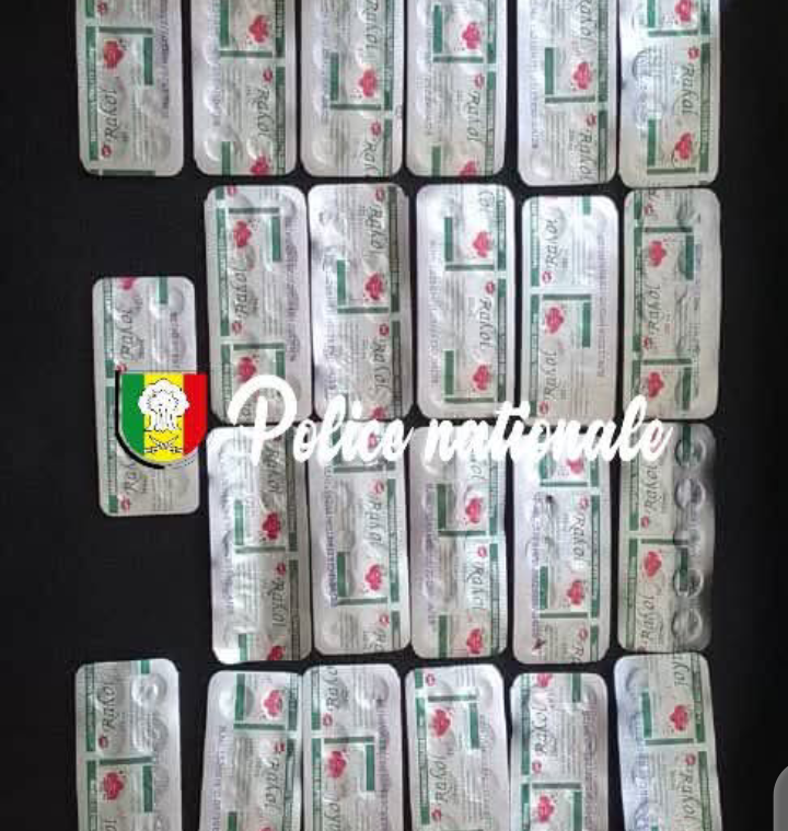 Saisie : deux cent trente (230) comprimés de Tramadol Rayol, une moto « Jakarta », deux téléphones portables et une somme d’argent.