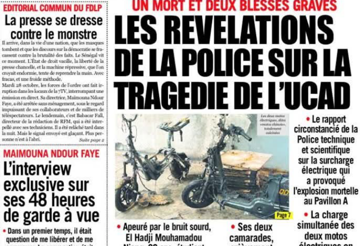 Apeuré par le bruit sourd, El Hadji Mouhamadou Niang, 22 ans, étudiant en Licence 3, n’aura pas survécu. Il s’est lourdement heurté le crâne dans sa chute. Ses deux camarades, grièvement blessés aux bras et aux jambes, admis aux urgences. La charge simultanée des deux motos électriques en l’absence d’un régulateur, le court-circuit et la forte détonation.