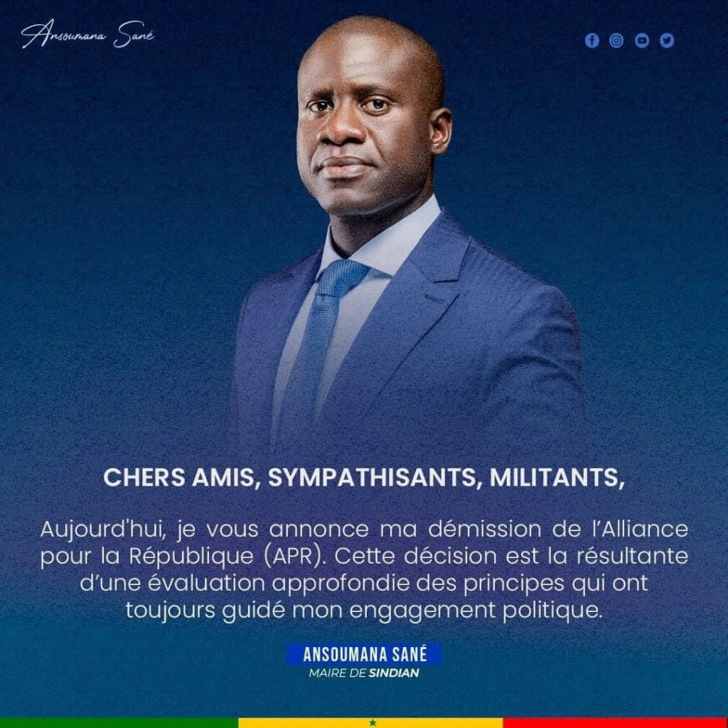 Urgent : Le maire de Sindia, Ansoumane Sane quitte la formation politique d’APR